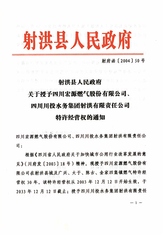 射洪水司、宏源燃?xì)馓卦S經(jīng)營(yíng)權(quán)