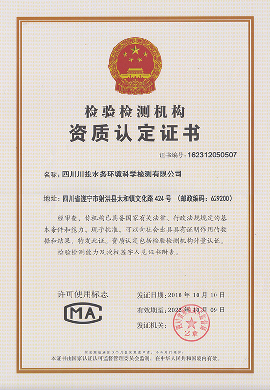 射洪水司CMA檢測(cè)資質(zhì)證書
