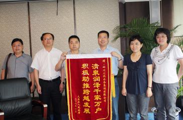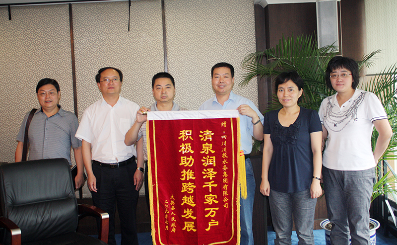 大英縣人民政府原縣長雷云向川投水務(wù)贈送錦旗