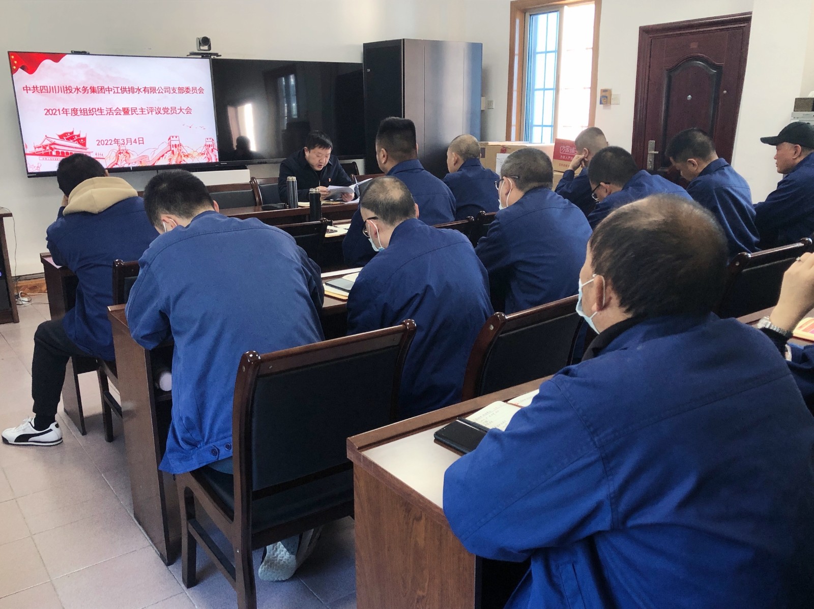2022年3月4日,中江水司黨支部組織召開2021年度組織生活會暨民主評議黨員大會。會議由黨支部書記、董事長、總經(jīng)理朱禹主持,支部20名黨員同志參加會議。