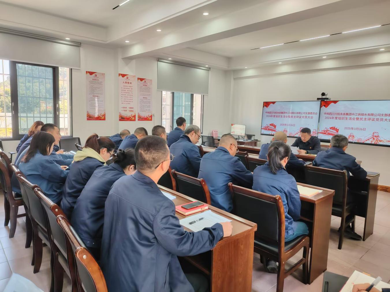 2025年3月26日,中江公司組織召開(kāi)2024年度組織生活會(huì)暨民主評(píng)議黨員大會(huì),會(huì)議由黨支部書(shū)記朱禹主持,支部22名黨員參加會(huì)議,公司供水部、污水部2名員工列席會(huì)議。