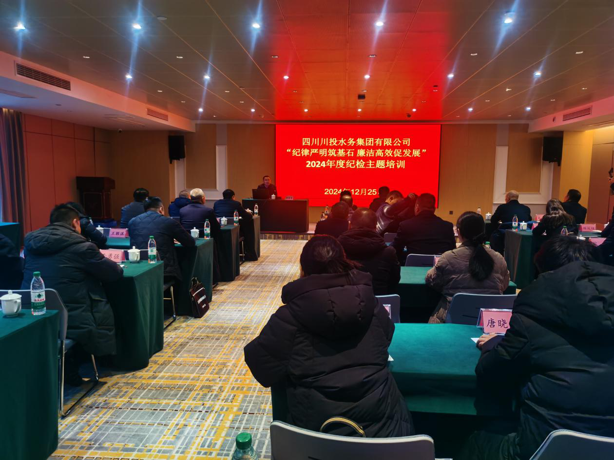 為進(jìn)一步落實黨紀(jì)學(xué)習(xí)教育工作要求,把“清”和“廉”的要求貫穿到企業(yè)經(jīng)營發(fā)展全過程和各領(lǐng)域,2024年12月25日,川投水務(wù)集團(tuán)紀(jì)委組織了2024年紀(jì)檢工作培訓(xùn)會。川投水務(wù)集團(tuán)全體黨員、子公司負(fù)責(zé)人、紀(jì)檢工作人員共計40余人參加了本次培訓(xùn)。