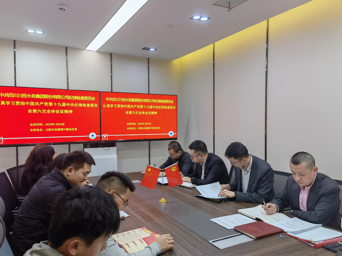 2022年1月24日,為認真學習貫徹中國共產(chǎn)黨第十九屆中央紀律檢查委員會第六次全體會議精神,特別是習近平總書記重要講話精神,要總結運用黨的百年奮斗歷史經(jīng)驗,堅持黨中央集中統(tǒng)一領導,堅持黨要管黨、全面從嚴治黨,堅持以黨的政治建設為統(tǒng)領,堅持嚴的主基調不動搖,堅持發(fā)揚釘釘子精神加強作風建設,堅持以零容忍態(tài)度懲治腐敗,堅持糾正一切損害群眾利益的腐敗和不正之風,堅持抓住“關鍵少數(shù)”以上率下,堅持完善黨和國家監(jiān)督制度,以偉大自我革命引領偉大社會革命,堅持不懈把全面從嚴治黨向縱深推進。川投水務集團黨委委員、副總經(jīng)理嚴斯亮組織本部全體黨員干部、職工對會議精神進行了專題學習。