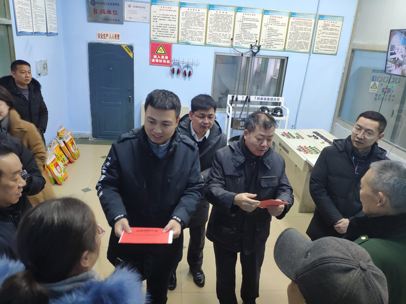上午9時(shí),羅總、梁董、鄧總慰問了萬源公司老黨員、困難職工,了解他們的生活狀況和困難情況,并代表川投集團(tuán)和川投水務(wù)將大米、油等生活物品及慰問金送到了老黨員和困難職工的手中,希望他們繼續(xù)努力工作,為公司發(fā)展再作貢獻(xiàn)、再立新功。慰問結(jié)束后,羅總一行又來到銀洞子水廠廠區(qū),開展安全環(huán)保檢查。集團(tuán)領(lǐng)導(dǎo)詳細(xì)查看了水廠運(yùn)行情況,了解了萬源公司當(dāng)前生產(chǎn)經(jīng)營和城區(qū)供水保障情況,對(duì)萬源公司的安全生產(chǎn)工作給與了充分肯定。羅總、梁董、鄧總要求萬源公司要提前做好水廠生產(chǎn)設(shè)施和供水管網(wǎng)的檢查和檢修,確保春節(jié)期間萬源市城區(qū)供水安全平穩(wěn)。