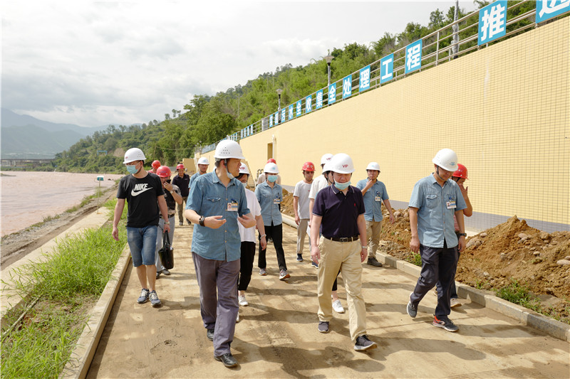在米易項目現場,川投集團安全環(huán)保部部長陶世賢、川投水務集團安全環(huán)保部經理馬玉斌一行在公司現場負責人、建設安全部經理李軍的陪同下,仔細對一枝山項目現場工程進度、安全生產、防汛值班、設備調試等進行專項檢查。