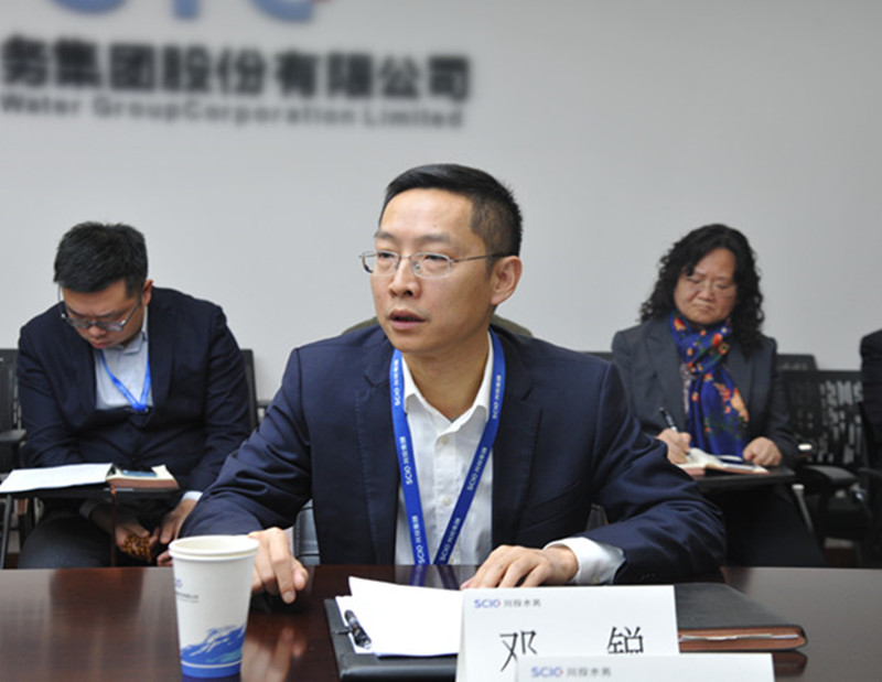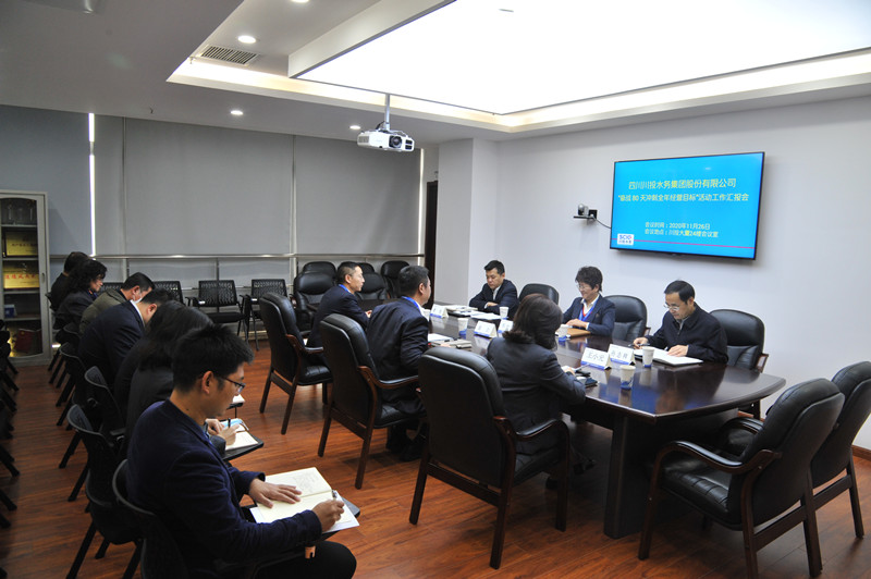 川投水務黨委副書記、總經(jīng)理鄧銳向調研組一行匯報了川投水務“奮戰(zhàn)80天”活動各項工作開展情況及下一階段工作打算。