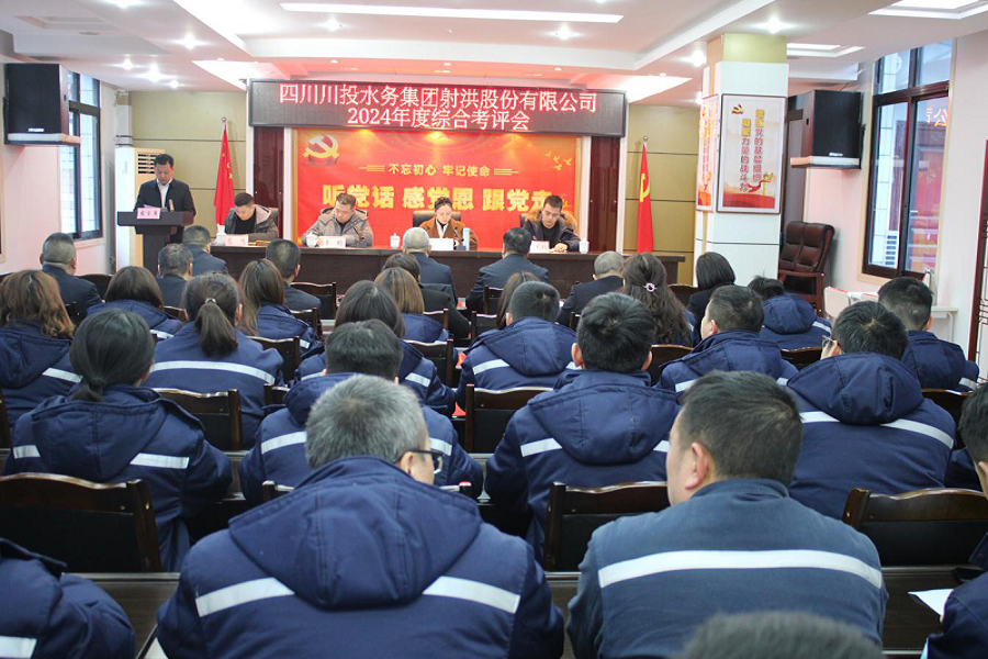 2024年12月26日,川投水務(wù)黨委成員、副總經(jīng)理唐韜一行4人赴射洪公司開展2024年綜合考評工作,射洪公司領(lǐng)導(dǎo)班子、中層干部及員工代表共計(jì)50余人參加會(huì)議。