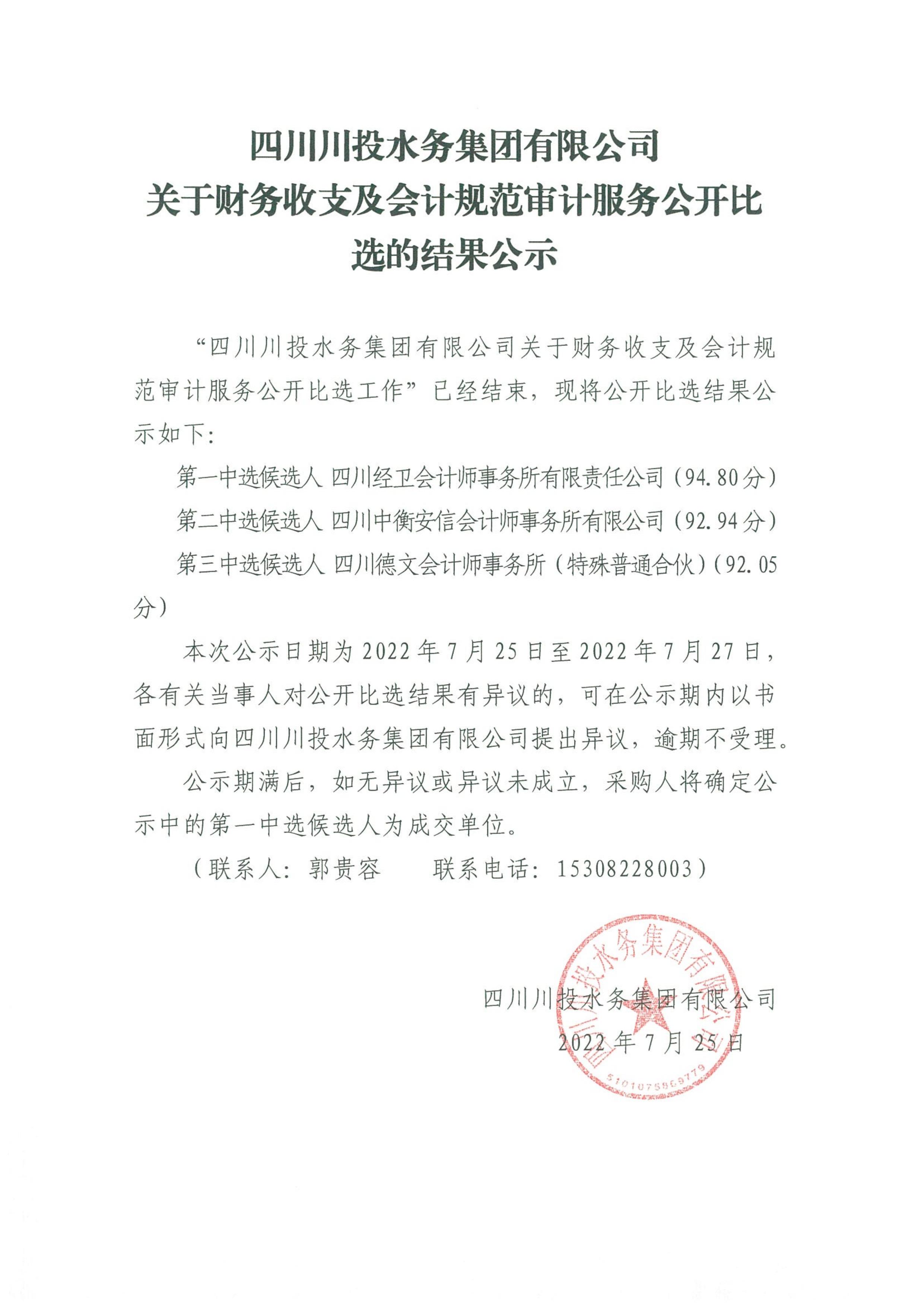 上一條:四川川投水務(wù)集團(tuán)有限公司關(guān)于選聘財(cái)務(wù)收支及會(huì)計(jì)規(guī)范審計(jì)服務(wù)中介機(jī)構(gòu)的公告(第二次)