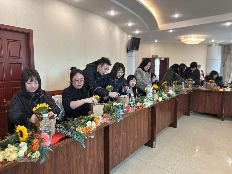 活動現(xiàn)場,花香四溢,氣氛溫馨。專業(yè)花藝?yán)蠋煘榕詥T工們詳細講解了插花的基本技巧、花卉的寓意以及日常養(yǎng)護方法。在老師的指導(dǎo)下,大家紛紛動手挑選花材、修剪枝葉、搭配色彩,用心創(chuàng)作屬于自己的花藝作品。每一束花都凝聚了女性員工們的巧思與創(chuàng)意,展現(xiàn)了她們對生活的熱愛與對美的追求。