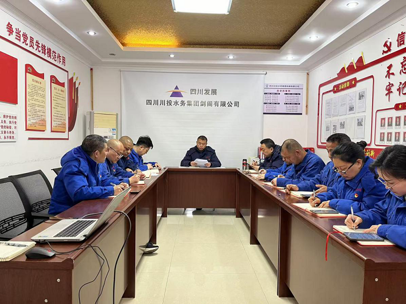 2025年3月31日,中共四川川投水務(wù)集團(tuán)劍閣有限公司支部委員會(huì)召開專題學(xué)習(xí)會(huì)——深入學(xué)習(xí)貫徹中央八項(xiàng)規(guī)定精神和四川省委十項(xiàng)規(guī)定精神。會(huì)議由黨支部書記李云主持,全體黨員、干部參加。